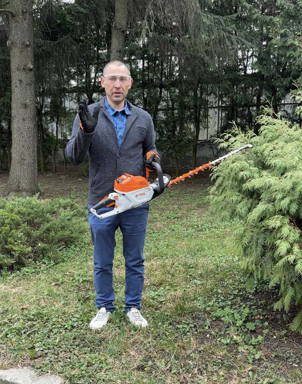 До заходу долучився доцент кафедри садово-паркового господарства, кандидат сільськогосподарських наук Михайло ОСІПОВ, який випробував представлену техніку в роботі та відзначив її ефективність і зручність для професійного використання.