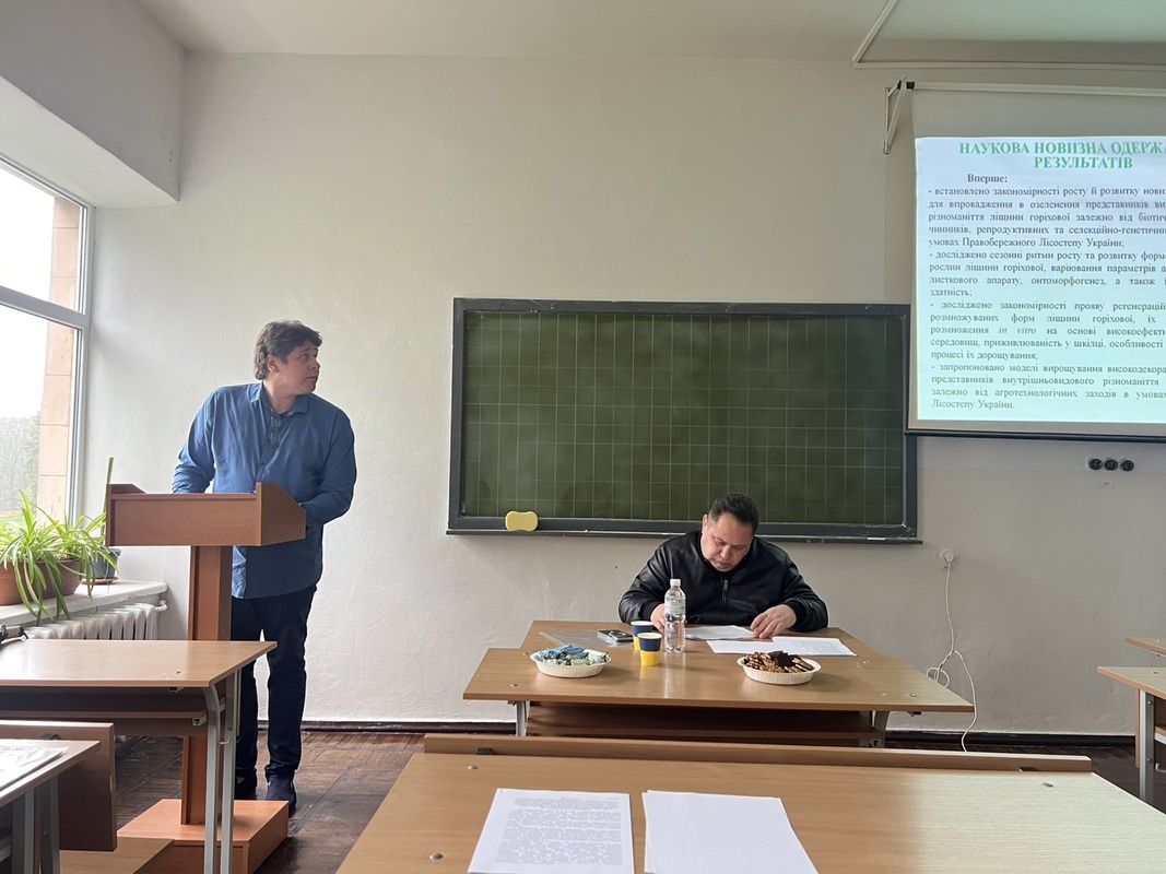 20 квітня 2026 року на розширеному засіданні кафедри садово-паркового господарства Уманського національного університету відбулася публічна презентація дисертаційної роботи Залізняка Антона Миколайовича, поданої на здобуття наукового ступеня доктора філософії з галузі знань 20 Аграрні науки та продовольство за спеціальністю 206 Садово-паркове господарство на тему: «Біолого-екологічні особливості представників внутрішньовидового різноманіття ліщини горіхової (Corylus colurna L.) та перспективи їх використання в садово-парковому господарстві Правобережного Лісостепу України», науковий керівник – Балабак Олександр Анатолійович, доктор с-г. наук, професор.