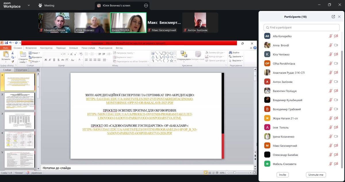 У рамках оновлення освітніх програм 5 березня 2026 року на кафедрі садово-паркового господарства відбулося публічне обговорення освітніх програм спеціальності «Садово-паркове господарство».